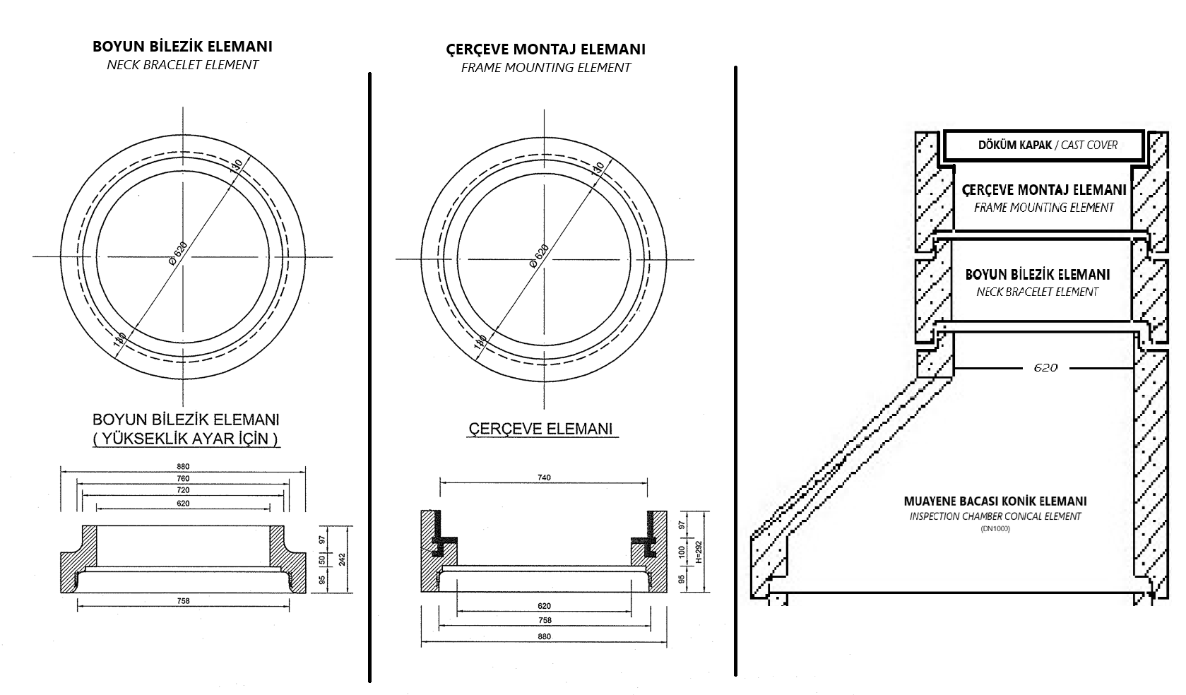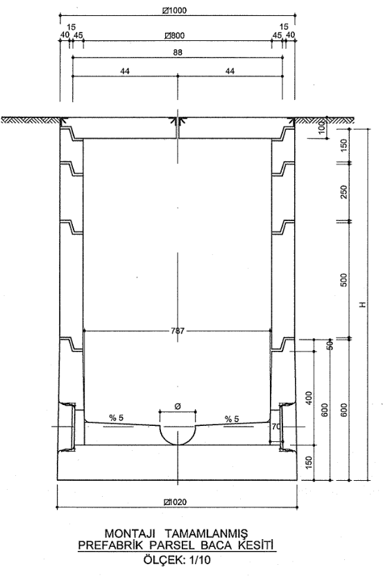 ø1000mm’lik ve ø1200mm’lik muhtelif çap çıkışlı