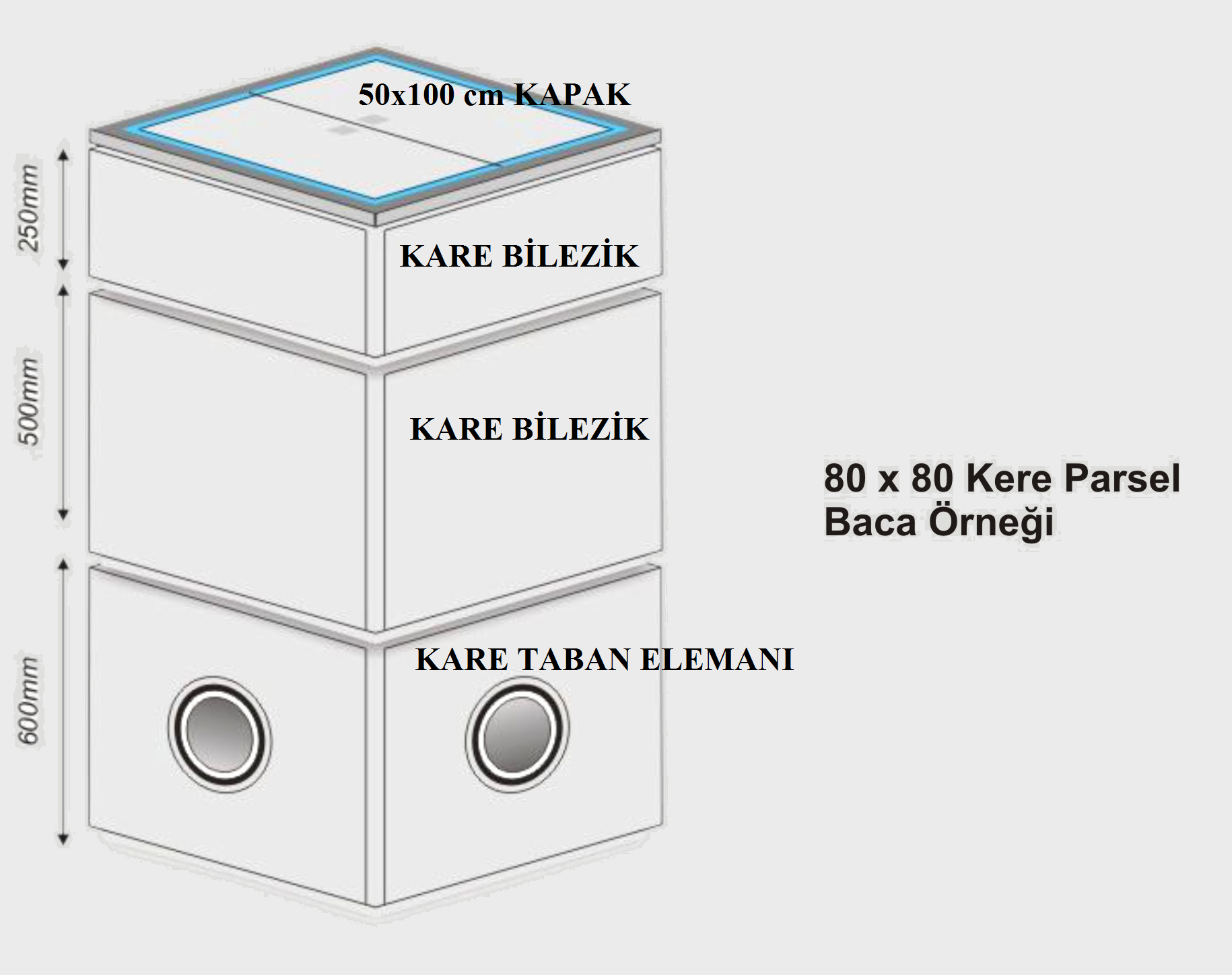 50 x 50 ve 80 x 80 ø200mm çıkışlı 40 x 40 ve 40 x 60 ø200-ø300mm çıkışlı